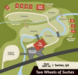 When you get to two wheels of suches and you pull into the lodge will be straight ahead. You will want to take a right and follow the trail around over the bridge. There is no designated camping area park where you want camp where you want
