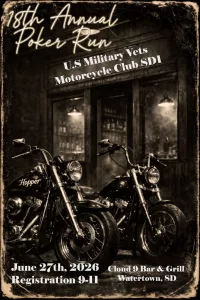 Brothers, we are excited to extend our invitation to come help us celebrate our 18th annual poker run June 26th -28th . Watertown SD . With camping at cloud 9 and hotels nearby . Also the “dollar store” 😁 1 block from the event
