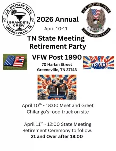 Tennessee 8 (Grande’s Crew) is gearing up for our Annual on Friday and Saturday, April 10–11.