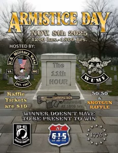 VA-5 Annual armistice day run here at the beach! We’re raffling off a shotgun (winner doesn’t have to be present to win), and also have some other great raffle prizes in the 50/50. We’ll be doing a FLASH sale as well. All T-shirts and beanies are Buy One Get One. Proceeds will be donated to the MayFlower Marathon Food Drive.
